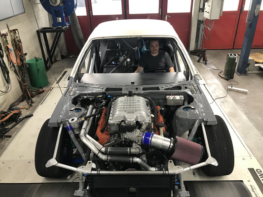 400PS, RB25 Motor mit Garrett 3076 Turbo, RB Getriebe, Skyline Antriebswellen und Diff, Driftworks Hinterachse, Lenkwinkelkit THG, Sinterkupplung, einiges an Zubehör und Felgen